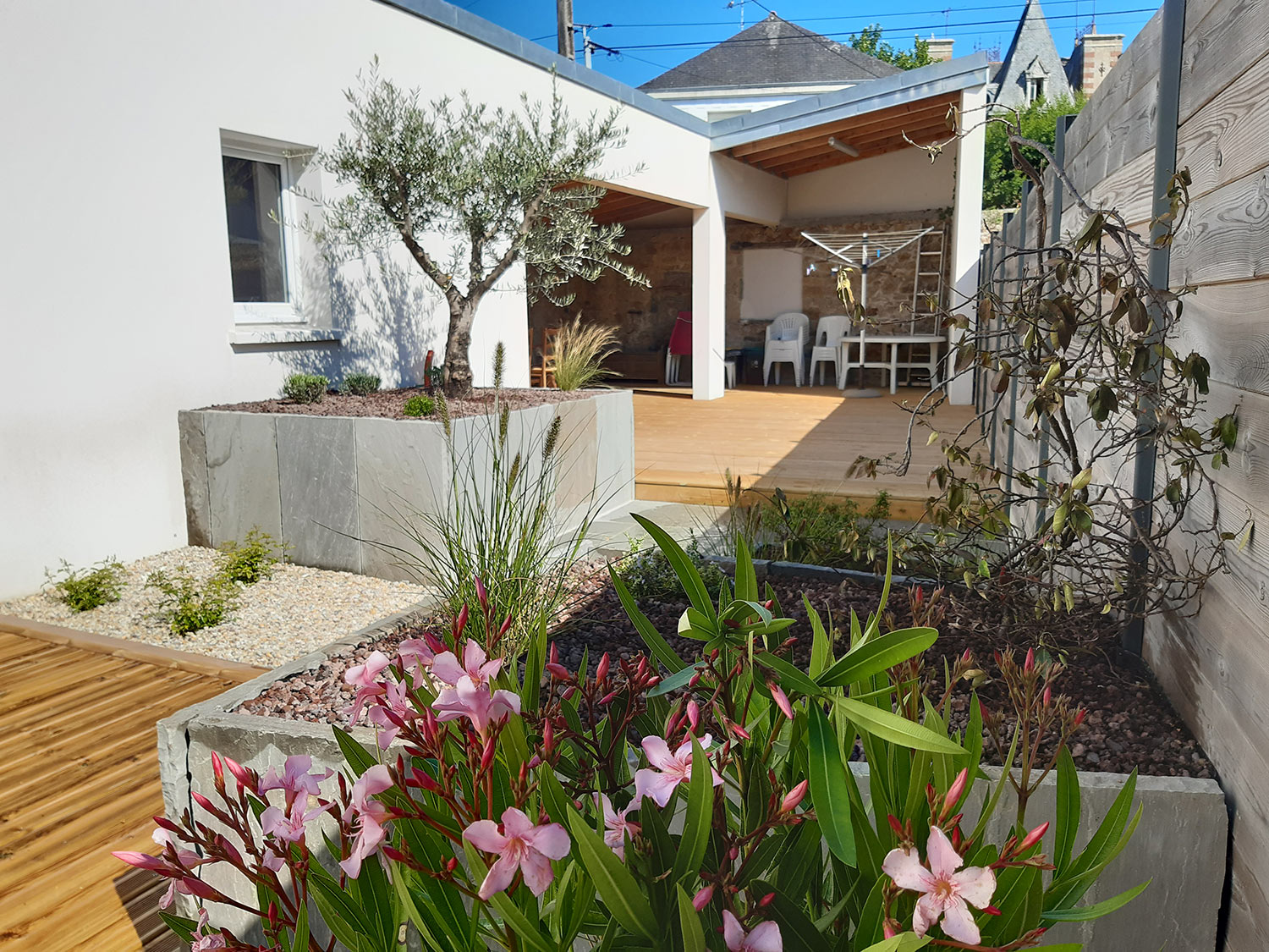 Que ce soit pour une terrasse (bois, dalle naturelle, carrelage…) nous vous accompagnons de la conception à la réalisation. Pour une pergola bois, aluminium, bioclimatique ou non, avec une belle Glycine qui vous fait de l’ombre ? Nous sommes encore là pour vous conseiller !
